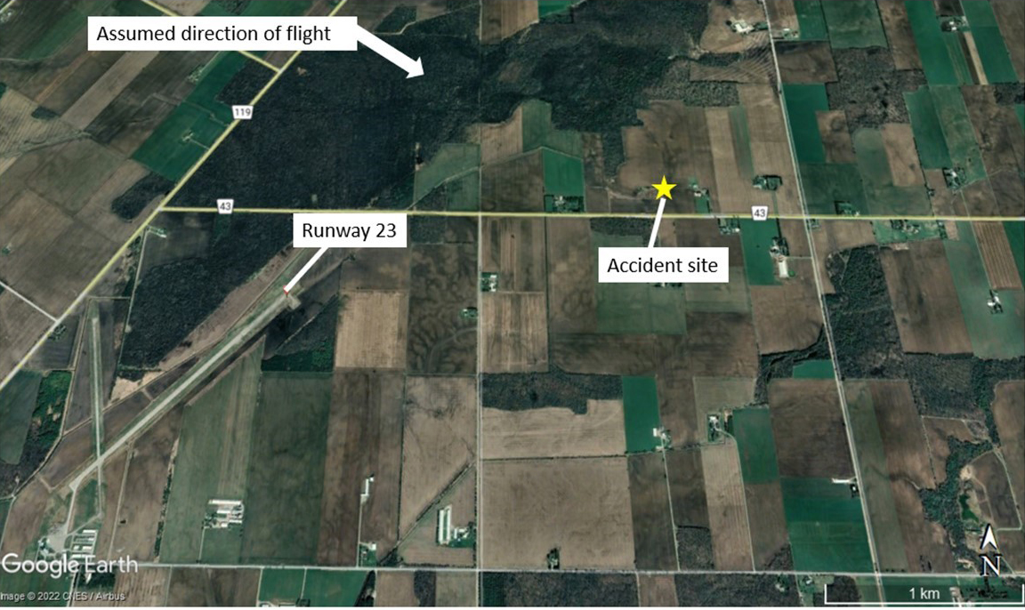 At approximately 0830Footnote 1 on 23 August 2022, the privately registered Grumman Aircraft Engineering Corp. G44 (Widgeon) aircraft (registration C-FNGD, serial number 1210) departed Sarnia (Chris Hadfield) Airport (CYZR), Ontario, for a visual flight rules (VFR) flight to Stratford Municipal Airport (CYSA), Ontario. The pilot was alone on board. The purpose of the flight was to bring the aircraft to a maintenance facility at CYSA to have an annual inspection performed.