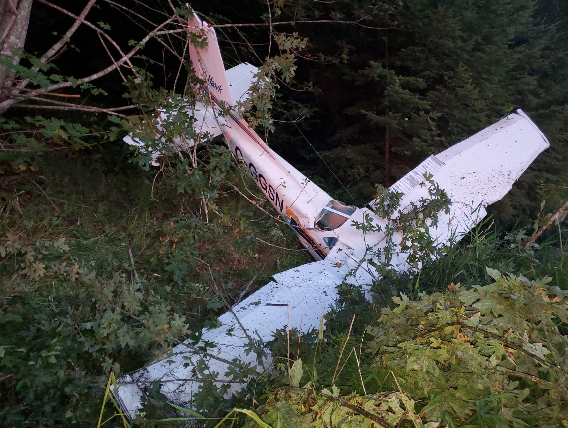 Figure 1. Accident site, approximately 1880 feet east-southeast of the end of Runway 11 (Source: Parksville Fire Department)