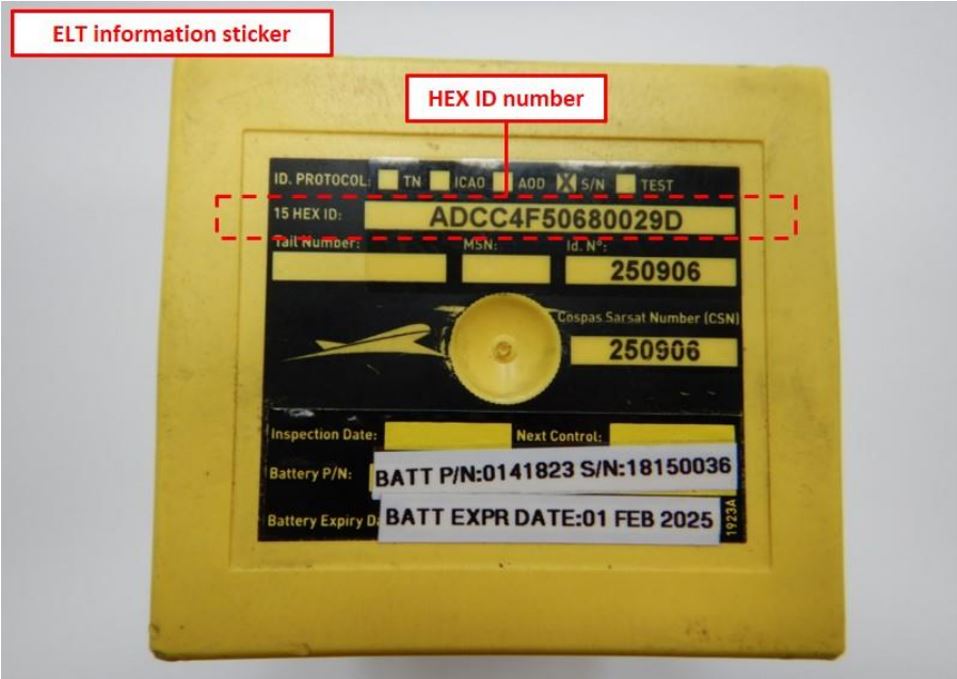 - A fleet campaign has been implemented to check all fleet emergency locator transmitters for labels with an incorrect Hex Id. Any incorrect Hex Id will be corrected.