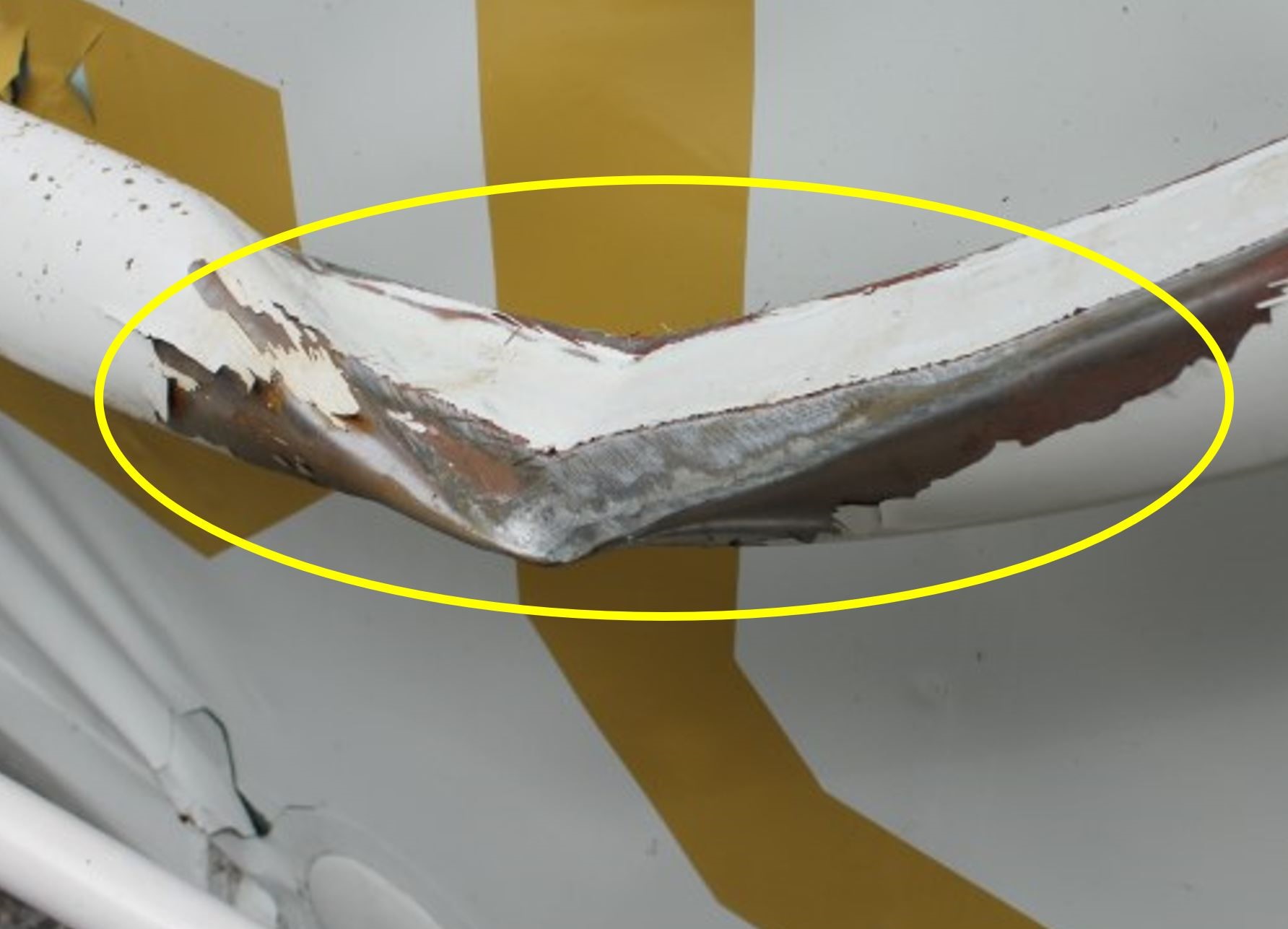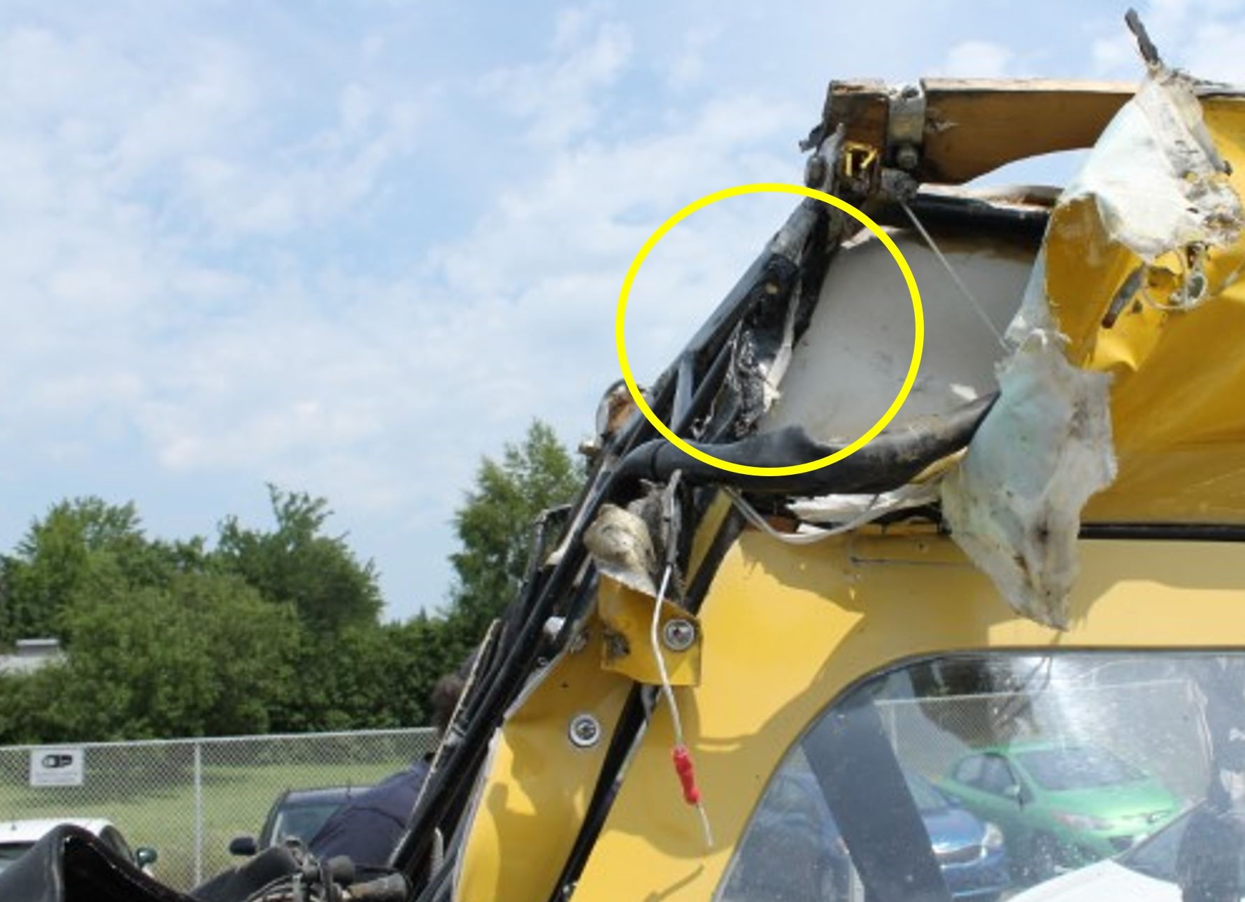 The damage to the lower cable matched the damage to the aircraft wreckage (Figure 2). Clear signs of contact with the cable were visible on the propeller blades, the left windshield post (Figure 3) and the left-wing strut (Figure 4).
