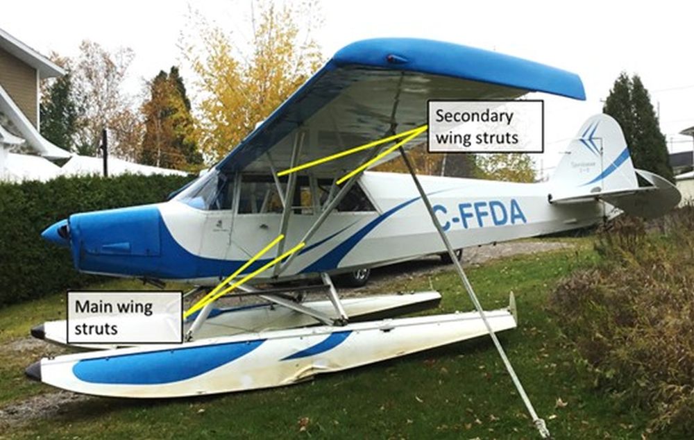 The floatplane was equipped with a 200 hp Avco Lycoming IO-360-A1B6 engine (serial number L-59367A). Each wing was supported by 2 main wing struts and 2 secondary wing struts (Figure 1).