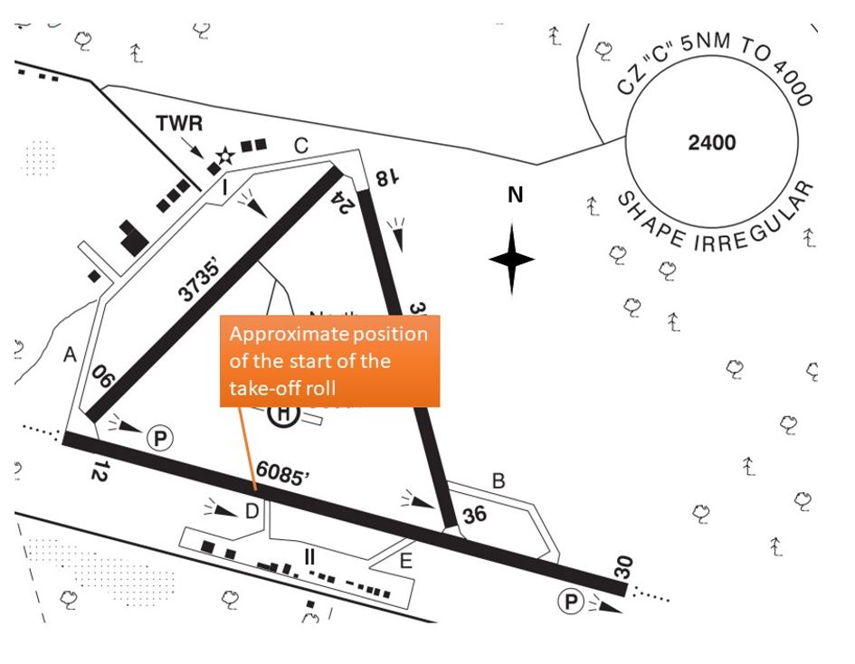 After the start-up and pre-flight checks were completed, the student pilot called the tower controller to request a clearance to taxi and take off from Runway 30; however, the tower controller instructed the student pilot to hold short of Runway 30 on Taxiway A, as there was a delay because many aircraft were in the circuit. At 0940, the tower controller instructed the student pilot to backtrack on Runway 30 from Taxiway A. The aircraft backtracked just short of Taxiway D and turned around. The tower controller then cleared the aircraft to take off from that position (Figure 1).
