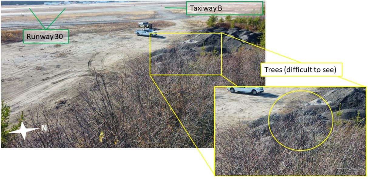 The trees that the aircraft contacted were approximately 20 feet tall and had previously lost their leaves, which made them difficult to see because there was little contrast with the surrounding gravel area (Figure 4).