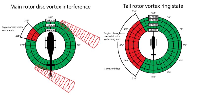 - main rotor disc vortex wind (winds from 285° to 315° relative to the helicopter);