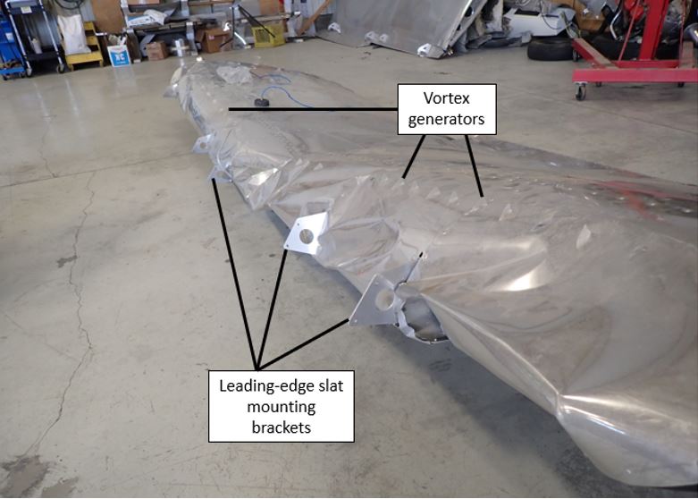 The occurrence aircraft’s wings were found with VGs installed on the upper curve of the wings’ leading edges. The wings were also found with the slat mounting brackets attached to the wings’ leading edges, but without their leading-edge slats installed (Figure 2). The investigation determined that these modifications were completed by the person who owned the aircraft before the owner at the time of the occurrence. The occurrence pilot had flown the aircraft with and without the leading-edge slats installed.
