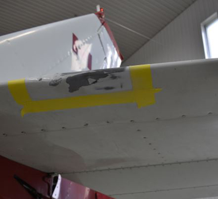 During the collision sequence, C-GRAE’s nosewheel and then horizontal stabilizer struck the top of C-FUAE’s rudder and its vertical stabilizer, causing minor damage to both aircraft. C-GRAE’s horizontal stabilizer sustained only a slight deformation of the left leading edge and a superficial scratch to the lower skin (Figure 3). The upper part of C-FUAE’s rudder partially separated, and the upper part of the vertical stabilizer was bent forward and to the left (Figure 4).