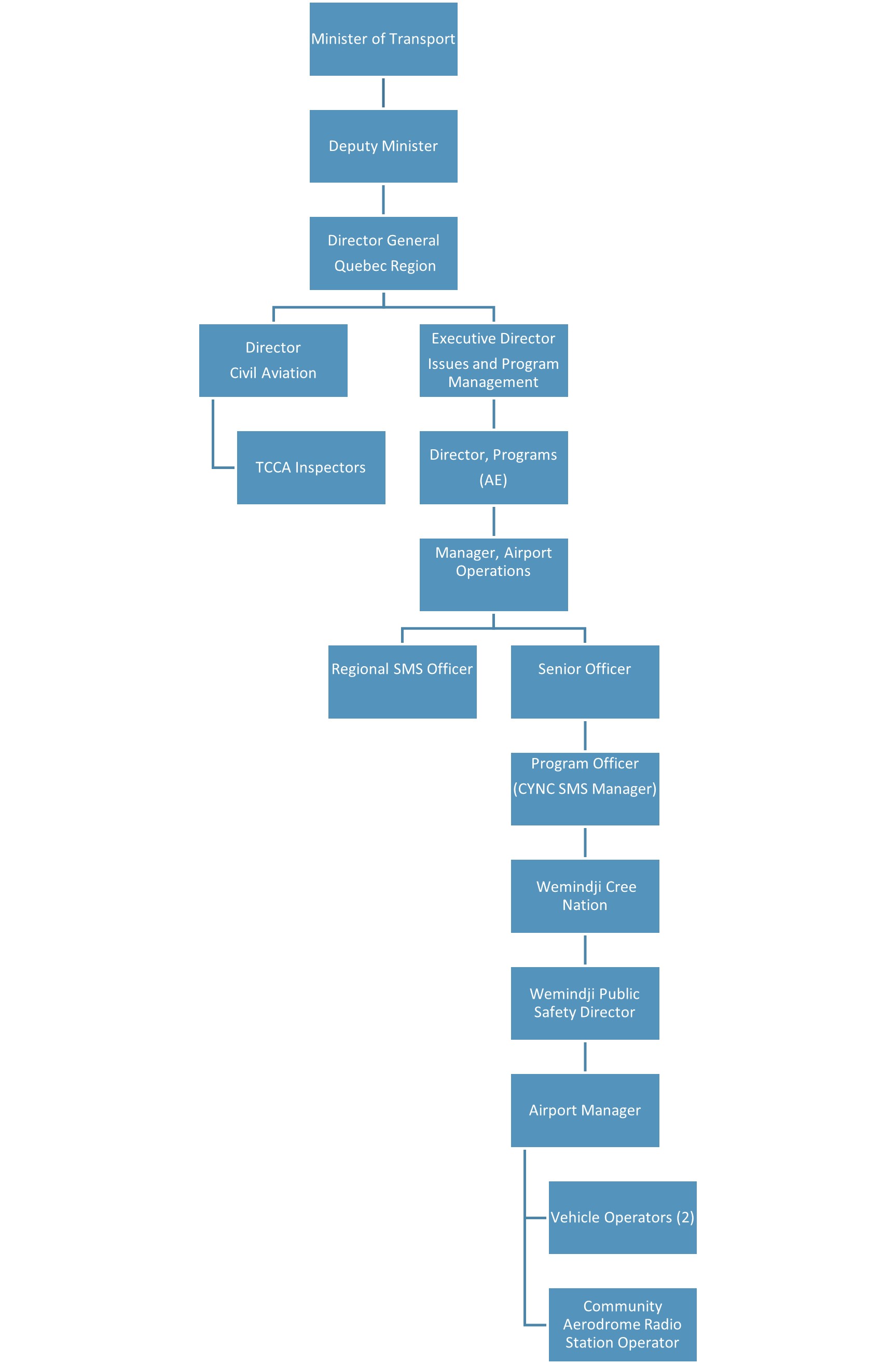 The accumulation of duties by the senior officer, combined with the absence of support resources, resulted in inefficiencies and made it difficult to meet some of the requirements of the SMS Manual. Deficiencies were identified in several critical aspects of operations, including updating documentation, hazard identification, risk assessments, conducting management reviews, and direct supervision of the CYNC site.