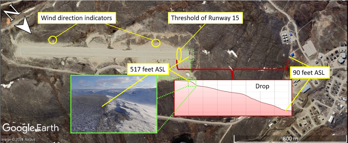 Air Inuit had published in its standard operating procedures a best practice based on Transport Canada’s TP 312 and the Transport Canada Aeronautical Information Manual (TC AIM). This practice recommended using the wind direction indicator as an aiming point for runways like the one at CYKG to allow for a touchdown from 500 feet beyond the runway threshold. As with the aircraft manufacturer’s calculations, pilots may have the impression that this distance is also lost for the ground roll, limiting the safety margin.