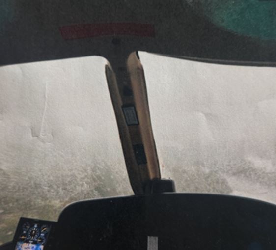 At approximately 1600, given the poor weather conditions, the pilot landed at Le Domaine, a rest area and lodging site for hunting and fishing enthusiasts owned by the Société des établissements de plein air du Québec. One of the passengers took a photo with their cellphone while in flight before landing at Le Domaine, which showed that forward visibility was very low due to heavy rain (Figure 1). Text messages exchanged between an individual on the ground and this passenger confirmed that weather conditions were poor during the flight.