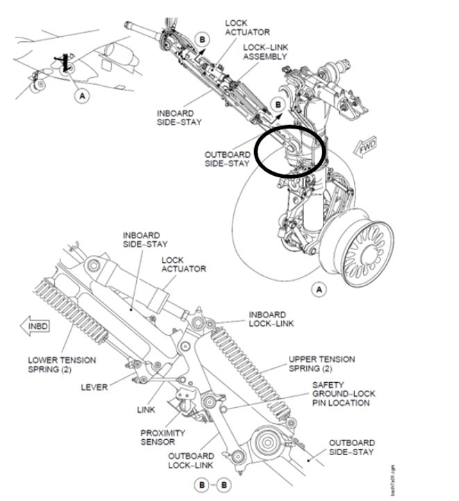 The right MLG outboard side-stay (Figure 4) locks the landing gear in place and prevents the landing gear from collapsing during normal operations.
