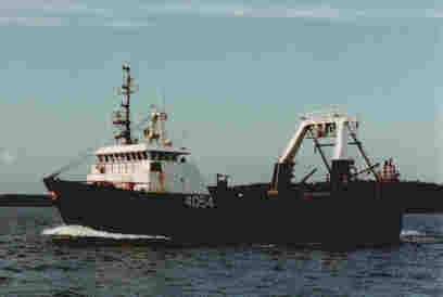 The "CAPE BRIER" is a conventional stern trawler with the fish-processing spaces and fish holds amidships. The navigation bridge and crew accommodation are forward, and the machinery space aft.