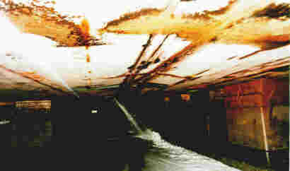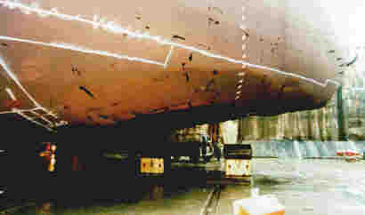 Showing bottom damage. (Photo courtesy of Newport News Shipbuilding)