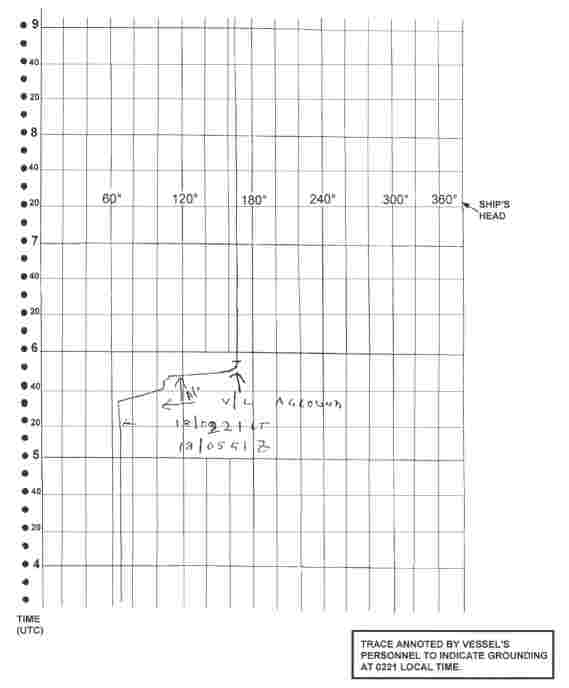 At this time, the distance from the nearest land echo was reported to have been two cables. However, at 0221, the vessel struck bottom on the forward starboard side and then heeled to port. The engine was put to full astern and, at 0227, the engine control was transferred to the engine-room and maximum revolutions applied.