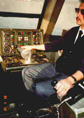 "BURRARD BEAVER" Operator seated between the console; steering and monouvering controls.