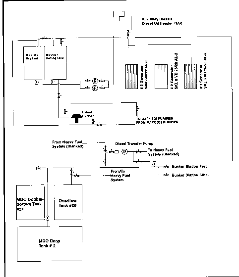 MDO is carried in No. 2 deep tank, in No. 21 double-bottom tank, in No. 37 settling tank, and in No. 39 day tank (see Appendix A).