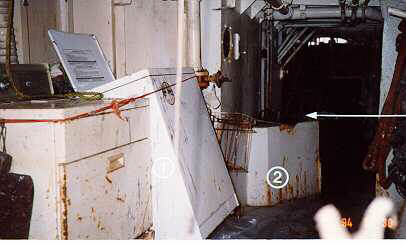 When the tide was right, the diving resumed with a special dive team from the Canadian Forces Base Esquimalt. The chief engineer was found in the dry store (L) off the galley/messroom area at 1550.