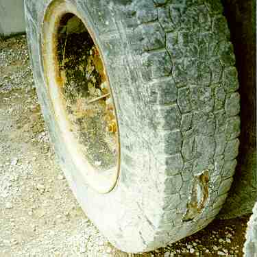 A provincial Ministry of Transportation inspection on 27 September showed that 7 of the vehicle's 10 tires were in a worn but regulatory satisfactory condition, and that the treads of the two right rear outside tires were worn down below regulatory minimum standards. Furthermore, the tread of one of the left rear outside tires was damaged, exposing internal reinforcement wires over an area about 20 cm long by 6 cm wide. The abraded and rusty surfaces of the exposed wires were consistent with this damage having been incurred some time before the immersion of the vehicle in this occurrence. (See Appendix C, Photographs No. 2 to No. 4.)