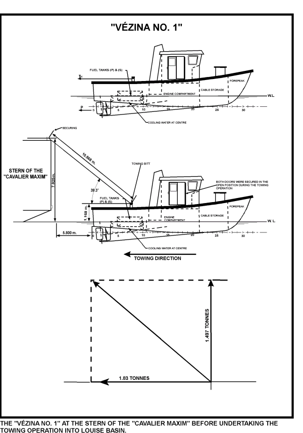 3. The tow-line between the "CAVALIER MAXIM" and the "VÉZINA NO. 1" was too short and the angle between the attachment points too steep for the intended turning manoeuvre.