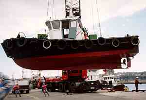 4. The crew of the "VÉZINA NO. 1" took the eye of the tow-line on board and hooked it over the towing bitt in the middle of the afterdeck.