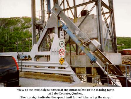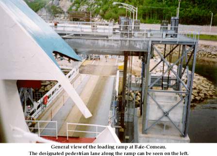 The operation of the loading ramp is described in a guide entitled Guide d'utilisation de l'embarcadère routier de Baie-Comeau, prepared for loading ramp attendants by Public Works and Government Services Canada in February 1992. Paragraph 2.6 of this guide states that, as regards traffic control, no vehicle will be allowed on the ramp when pedestrians are using the ramp.