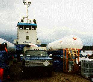 Under deck, the barge was carrying 15,000 L of stove oil, 247,000 L of diesel oil, and 183,000 L of gasoline.