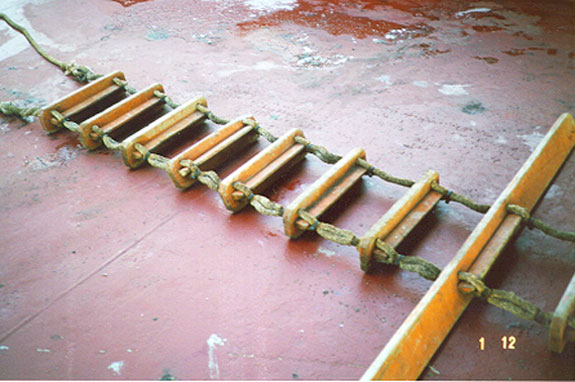 - Apparently the pilot ladder had been secured without ensuring that it had been properly ranged down the ship's side.
