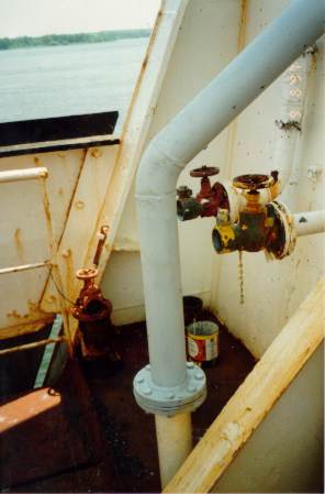 The Flume tank is normally filled to the desired level prior to departure from port. Once filling is completed, the flexible hose is disconnected and the cap put in place.