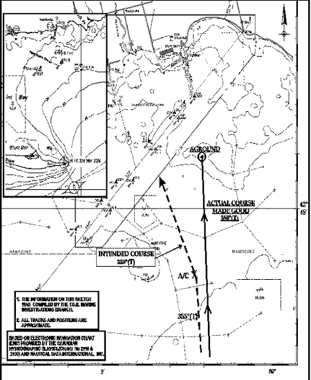 Between 0534, rounding Long Point Bay, and 0650, the time of running aground, there was only one position fix, at 0615.