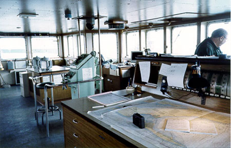 The ARPA radar was operating and located beside the ECDIS unit at the forward starboard bridge window, and an ECDIS repeater was at the centre control console. The port radar was on stand-by. The vessel is also equipped with Loran C and a Differential Global Positioning System unit.