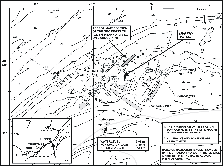 A data-sharing agreement also exists between the CHS and port authorities. If the works lie within the limits of a port over which the port authority has jurisdiction, the authority will inform the CHS directly of any change in survey results. However, this agreement does not apply to a private area in a port. The shipyard is located in a private area of the Port of Québec, and there was no procedure requiring the shipyard administration to submit its new bathymetric surveys to the Port of Québec Corporation.Footnote 4 Consequently, the results of the 1996 bathymetric survey were not forwarded to the harbour master's office.