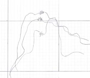 The approximate position of the grounding in way of the 3.8-m ridge shows that the vessel had drifted southeast of the alignment of the radar and yellow towers and that she was lined up approximately in the centre of the basin as reported.