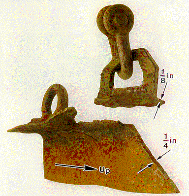 - The face flange of the bulwark stay in way of the upper lug to which the yo-yo block was secured was severely corroded, wasted, and bent beyond the original 90-degree angle; this was particularly noticeable in the area of the upper rigging attachment.