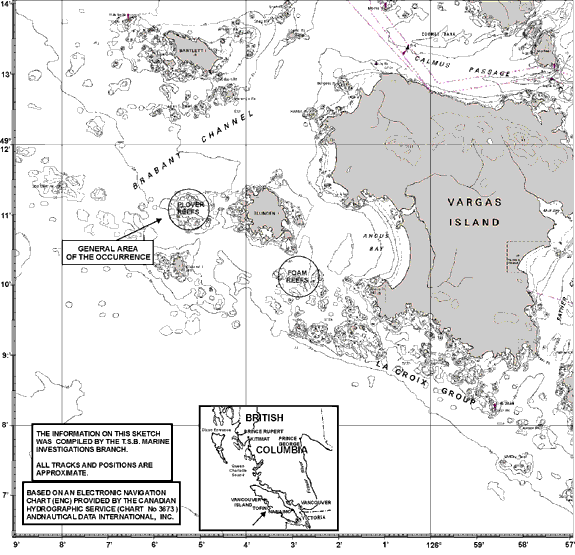 At the time of the occurrence, the weather at the La Perouse weather buoy, south-west of Tofino, recorded wind speeds of 10 kn, significant wave height of about 3 m to 4 m, and air and surface temperatures of 11.5°C. Reportedly, information from other vessels in the area indicated that the morning weather had moderated in the afternoon.