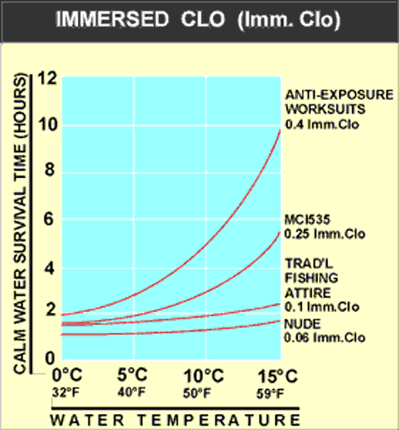 - Values which depict the level of thermal insulation a garment provides through the rate at which heat is lost from the body, as well as the difference in temperature between skin and water. Once these values have been determined, predictions can be made of the rate at which a person=s body temperature will drop in cold water
