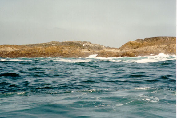 The operator steered the boat through the myriad channels forming Clayoquot Sound to the open Pacific Ocean where he slowed down upon encountering heavy, confused swells in the vicinity of reefs known as the La Croix Group, Foam Reefs and Plover Reefs. The passengers then spent about half an hour looking at whales before the operator decided to show them some marine life in the vicinity of Plover Reefs.