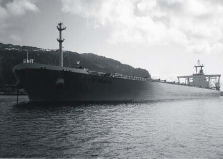 The Cape Acacia is a large bulk carrier with a bulbous bow, nine cargo holds, five sets of double bottom tanks, and five sets of side tanks. The crew accommodation, bridge, and engine-room are located aft.