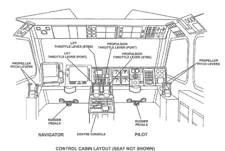 | Propulsion | Four Caterpillar 3412 TTA turbo-charged engines: two engines rated at 671 kW provide lift and two engines rated at 738 kW provide propulsion. Two 2.7-m diameter four-blade Hoffman variable-pitch propellers operating in ducts. 3779 horsepower (2818 kW) |