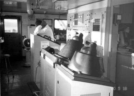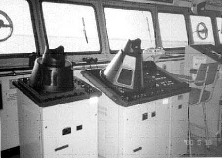 The Sunny Blossom was not equipped with a modern type of bridge layout. Those who controlled the vessel's movement had to look above the central forward window to see the helm indicator, look toward the starboard side of the bridge to confirm the engine telegraph setting, walk to the port side of the bridge to monitor the radars, and walk to the chart table abaft the central control panel to read the chart or monitor other navigation equipment.