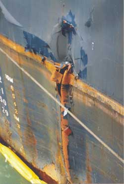 Shortly before the hull failure, the loading was almost completed in hold No 1 and it contained approximately 4923 tons of cargo. Port and starboard (P & S) ballast tanks No 2 were nearly empty and there was no cargo in hold No 2.