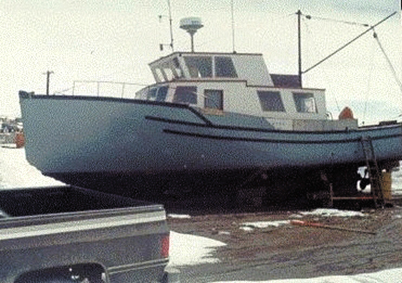 The Avataq was a small fishing vessel of open construction, with forward accommodation and wheelhouse (Figure 1). Two flush, non-watertight hatches were inset into the afterwelldeck. The hull was constructed of moulded glass-reinforced plastic (GRP) and stiffened by 19-mm plywood bulkheads spaced 82 cm apart. Some of these bulkheads had been removed to accommodate cargo below decks. Deck beams consisted of 10-cm-by-10-cm spruce overlaid with a 2.5-cm plywood deck. The afterdeck was drained by two threaded 7.6-cm scuppers on each side. An aluminum skiff was carried secured to the foredeck.