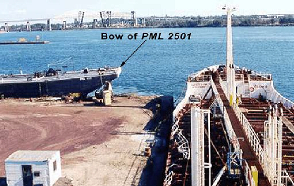 The PML 2501 is a square-ended, non-propelled petroleum tank barge of steel construction. It was moored in a westerly direction along the southern end of the Algoma Steel Corporation wharf (see Photo 1).