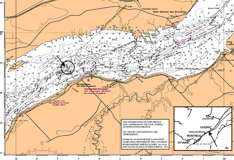 While upbound in daylight and in fair weather at around 1422, the Cedar, under conduct of a pilot, lost rudder control off Deschaillons-sur-Saint-Laurent and grounded on the north side of the channel near buoy D-36.