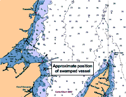 During the homeward voyage, winds gusted from the NNE at 15 to 20 knots and the seas began to build. At approximately 0630, the wind had increased to about 20 to 25 knots with wave heights reaching 3 to 5 m, when a wave came over the stern, flooding the loaded well deck. The crew started shovelling the herring over the side, but another wave lifted the stern and the vessel broached, shipping more water over the starboard bulwark.