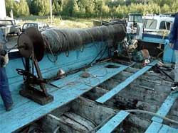 When a wave washed over the stern of the Alain-Josée, onto the well deck, an attempt was made by the crew to shovel some of the fish over the side, but without success. The gasoline-powered pump in the wheelhouse was started, but reportedly, there was no water in the bilge to pump and the unit was shut down. The accumulated water on deck was impeded from draining by the mass of fish covering the drain holes in the deck planking.