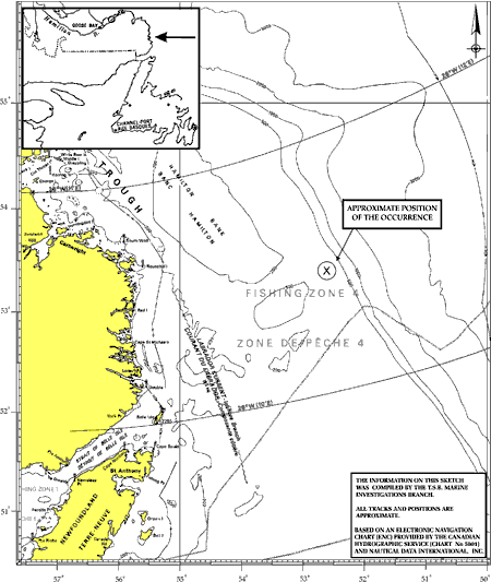 The Fame, with a crew of 24, departed Argentia, Newfoundland and Labrador, on 13 April 2001 en route to the fishing grounds in the Labrador Sea, approximately 117 nautical miles northeast of Belle Isle, Newfoundland and Labrador (see Appendix A). The vessel arrived at its destination and commenced fishing for shrimp. At 1500Footnote 1 on 18 April 2001, a loud bang was heard which was followed by an abrupt shutdown of the main engine and an electrical blackout of the vessel.
