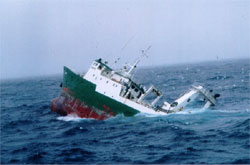 The master, now aware that the fog-like atmosphere in the engine room was refrigerant gas and that it would not dissipate quickly, started to negotiate a tow from one of the other vessels fishing in the immediate area.