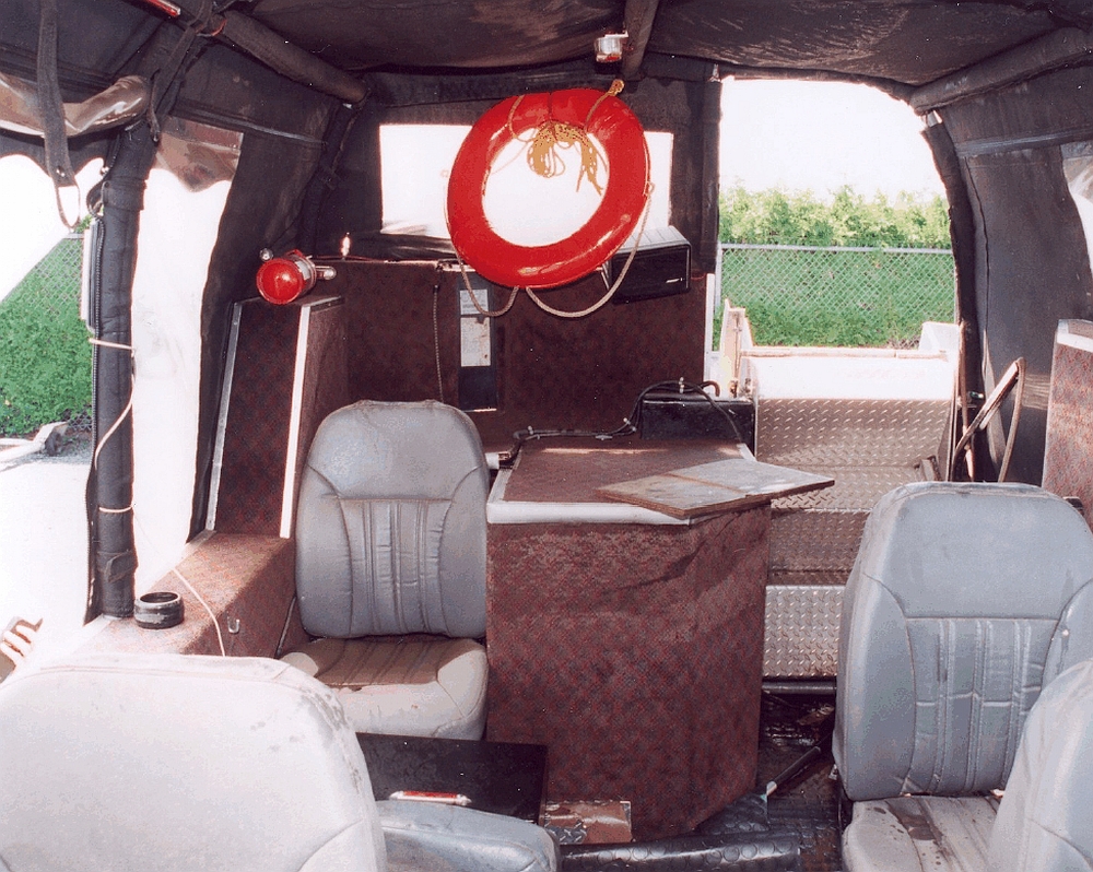 The vehicle's communication aids included a very high frequency (VHF) radio, a public address system, and a two-way radio, all adjacent to the driving position.