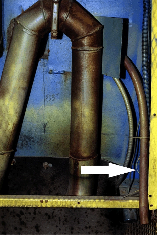 The vehicle was fitted with five drainage points, each comprised of a hand-operated, ball check valve (seacock) with a swing-check, non-return valve immediately inboard, both of which were mounted on a common pipe spigot and closed with a screwed steel plug. Four of the drainage points were 19 mm (¾ inch) in diameter; the fifth was 12 mm (½ inch) in diameter. Once on shore, the drainage points could be used to release accumulated water from the bilges (see Figure 1).