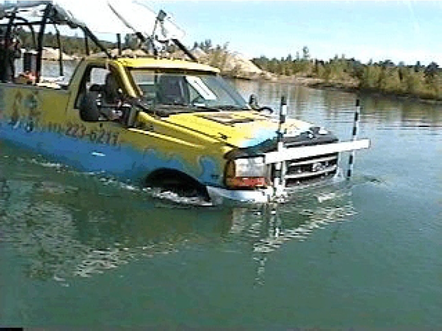 • The main ignition key was turned "on" and the front engine, which had been running when the vehicle sank, had incurred extensive mechanical and electrical damage due to water ingestion.
