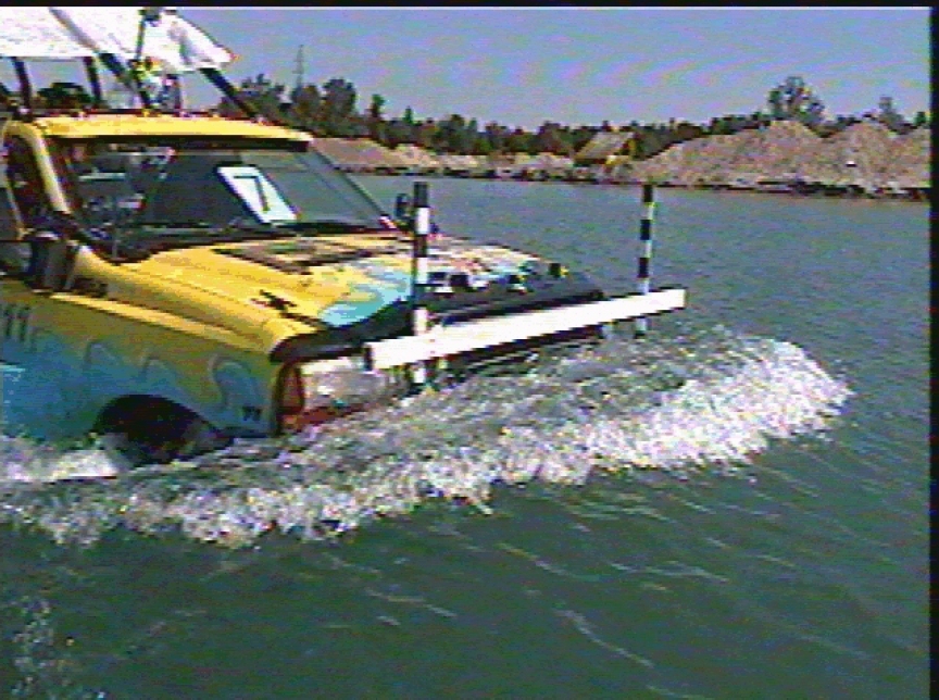 The vehicle was based on the conversion of a Ford F-350 truck chassis (see Photo 1). The original gasoline engine was used for on-road operation. A gasoline-powered Mercruiser inboard/outboard (I/O) motor at the rear was used for water-borne propulsion. Figure 1 shows the basic layout of the vehicle.